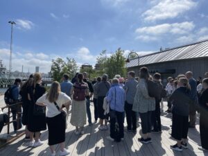 – Föreläsningarna dag 1 på konferensen avslutades med en presentation av Hamnbadet i Göteborg som vann föreningens utmärkelse “Årets Stadsbyggnadsprojekt 2024”. Därefter övergick konferensen i ett studiebesök, där vi gemensamt tog oss till Hamnbadet. Tillsammans med det fina försommarvädret och den intressanta presentationen och guidningen blev besöket på Hamnbadet ett trevligt inslag på konferensen.